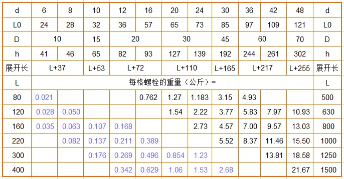 注:1.L0不包括螺尾,当L〈125时:L0=2d+6;当L>125~200时:L0=2d+12,当L>200时:L0=2d+25。