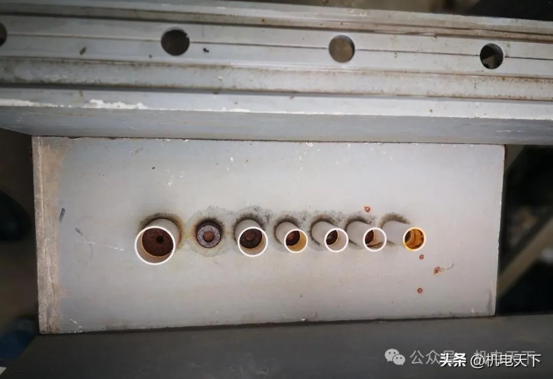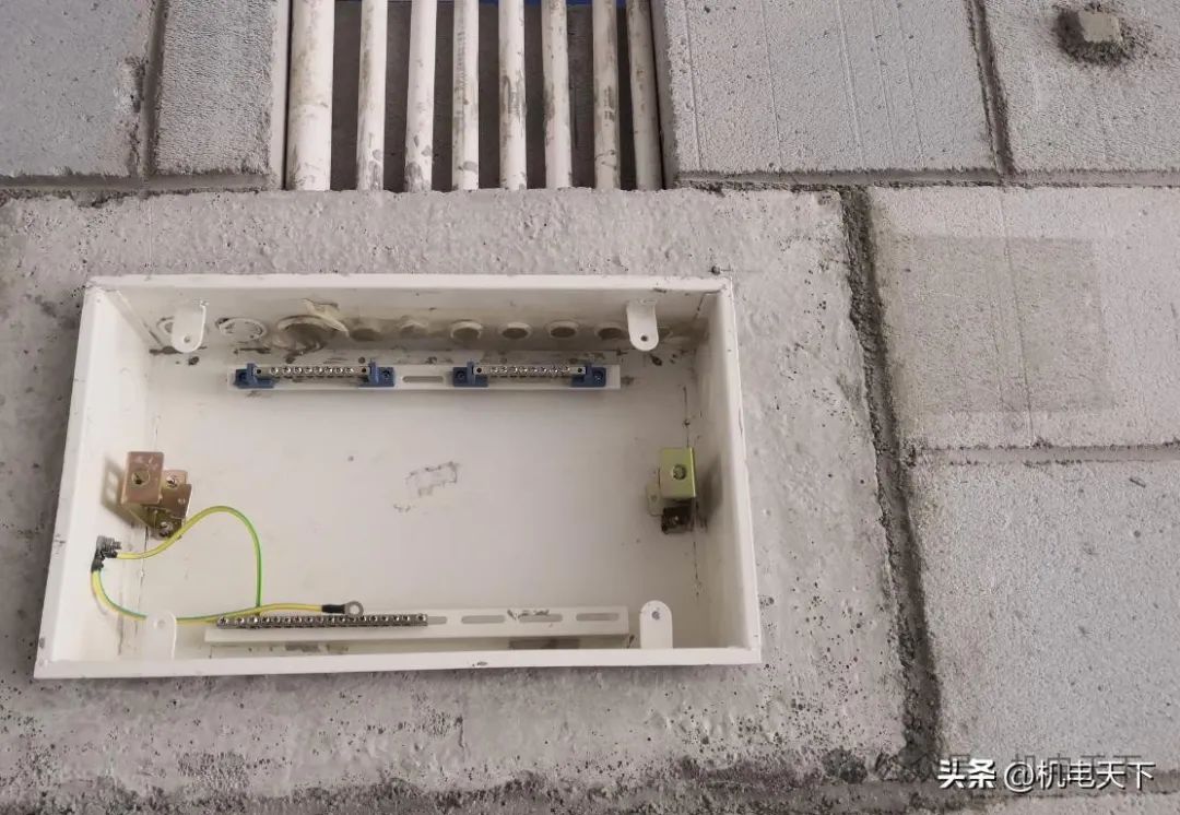 电箱开槽配管,管进电箱一管一孔,用专用盒接头与电箱固定,用专用开槽机开槽。