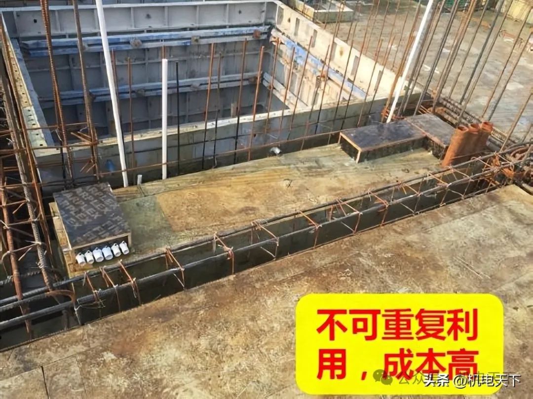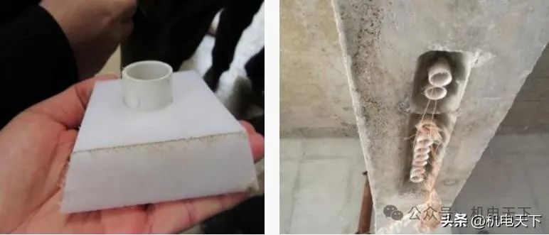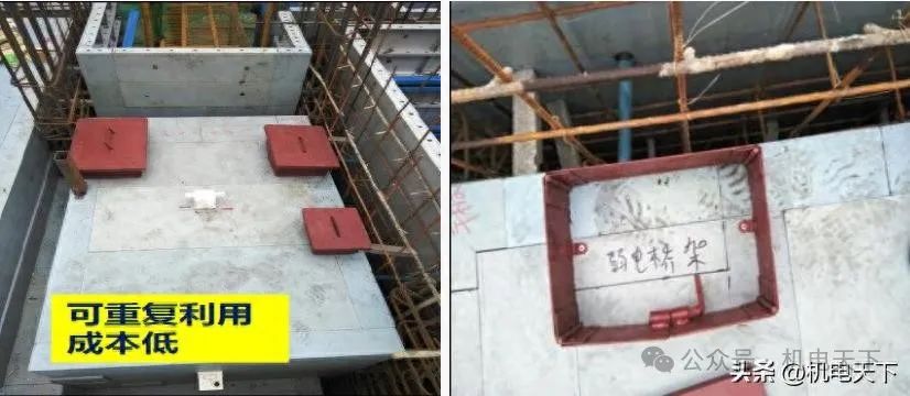 电井洞口预留方式2:传统做法,木制模具,层层定位、重复加工,成本较高。