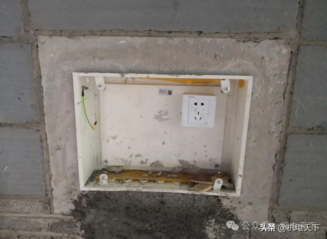 墙面接线盒拆模清通后,使用盖板盖住线盒,进行成品保护。