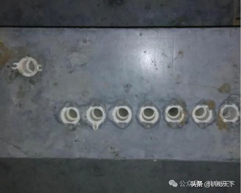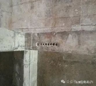 线管下翻,采用带耳直接固定于模板上,拆模后的效果。