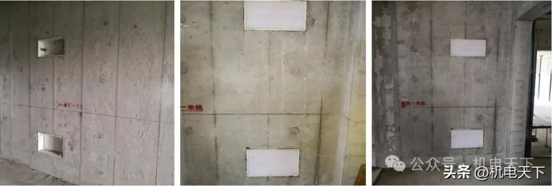 2.剪力墙内预埋线盒、箱体不应出现变形、偏位、脱模或凹墙大于1cm现象,以免影响后期内部配件安装;