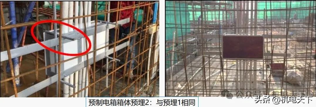 穿筋线盒预埋固定:优先选用穿筋盒“井”字型固定框架,底盒标高需考虑面板有超出底盒边沿5mm—8mm的宽度。