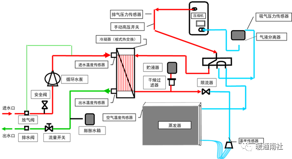 水系统容量、流量足够,系统无空气残留,流量开关无报警,水泵运转正常。