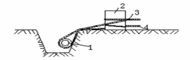 1-管道;2-立管;3-放松绳;4-固定绳