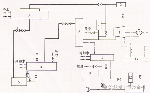 气路系统包括:吸气截止阀、吸气过滤阀、吸气止回阀、排气止回阀、排气截止阀等。