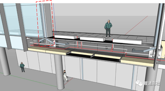 首层迎客大厅地面设置辐射供暖系统(大空间供暖,受北向的高大玻璃幕墙影响较大)。