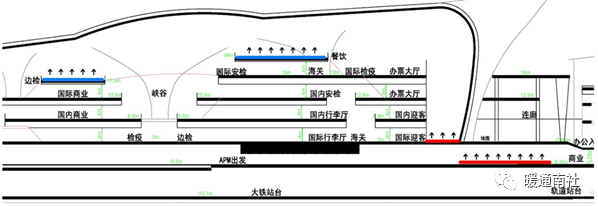 地下一层交通过厅等区域设辐射吊顶板供暖(大空间供暖及缓解轨道交通及停车楼的渗风)。