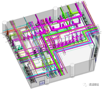 采用BIM(建筑信息模型)技术进行机房大样设计,包括热交换机房、空调机房、风机房、消防水泵房等大样;