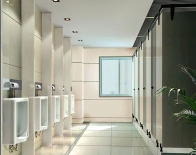 卫生间墙、地砖对缝,洁具对称排列,面砖找坡正确、套割精细,布局整齐划一蹲位居中,地砖对称铺贴砖中地漏,体现居中、对称的审美要求。