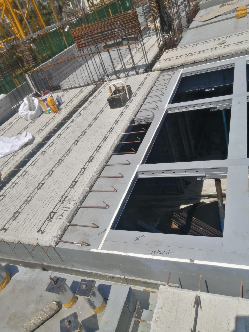 九、施工方法升级,采用铝合金模板体系替代木模体系。铝合金模板周转次数达150次以上,在提升施工效率、施工质量的同时,减少木材消耗。铝模具有高度的可回收性,使用后的铝模经过简单处理即可再次利用,有效降低了建筑垃圾的产生,减少资源浪费,实现可持续发展。