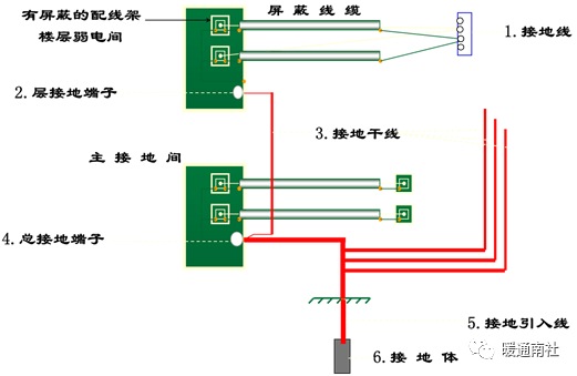3)接地干线:接地干线是由总接地母线引出,连接所有接地母线的接地导线。