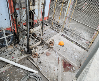 2.吴某林从人货梯与出料平台脚手架之间间隙侧身外探,不慎从未做好安全防护措施过大的间隙中高空坠落。