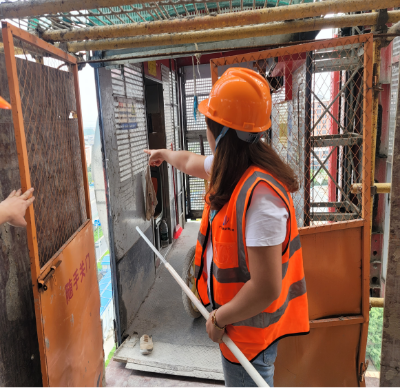 1.事发位置10号厂房8层人货梯与出料平台脚手架之间间隙达到350mm宽度,根据《建筑施工高处作业安全技术规范》(JGJ80-2016)第4.1.4条规定“施工升降机、龙门架和井架物料提升机等在建筑物间设置的停层平台两侧边,应设置防护栏杆、挡脚板,并应采用密目式安全立网或工具式栏板封闭”的要求,人货梯与出料平台脚手架之间的350mm宽度间隙未做好安全防护措施,不符合上述规范要求。