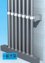 2)供冷、供热管道应按设计位置安装固定支架,固定支架与管道接触应紧密,固定应牢靠。滑动支架应灵活,滑托与滑槽两侧间应留有3~5mm的间隙。