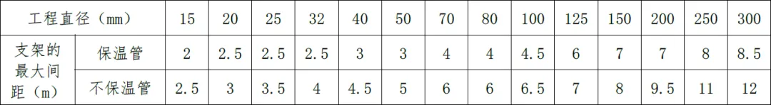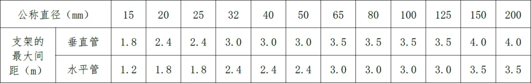 4)钢管水平安装的支、吊架间距不应大于下表规定。