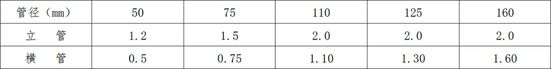 8)排水塑料管道支吊架间距,不大于下表规定。