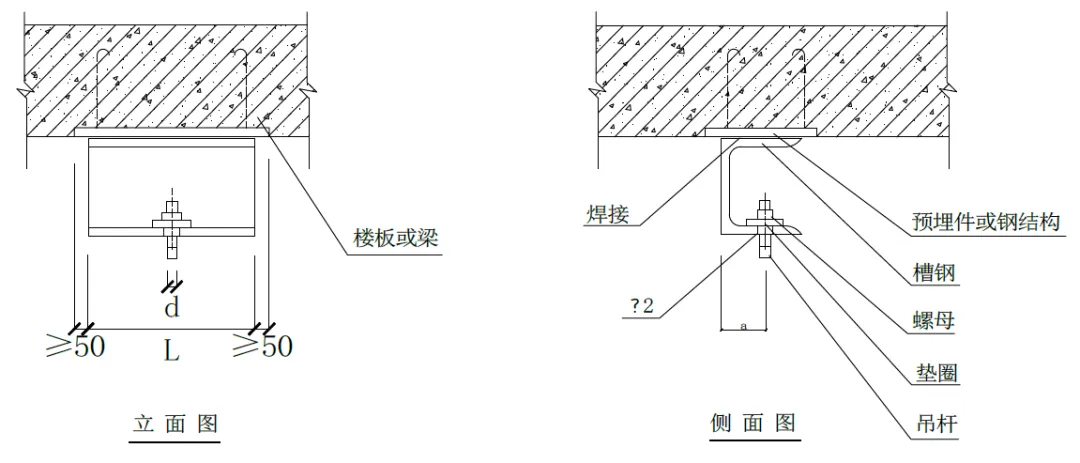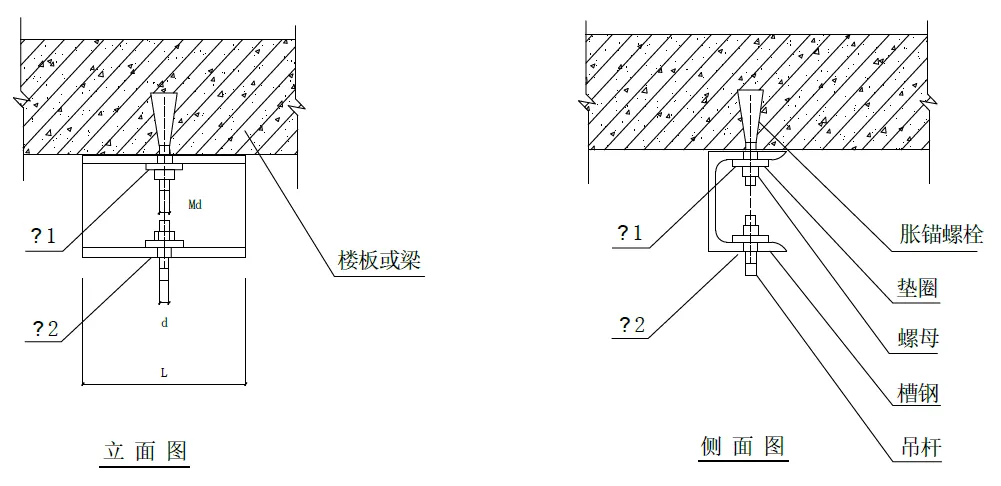 膨胀螺栓钢板与吊杆的焊接尺寸图