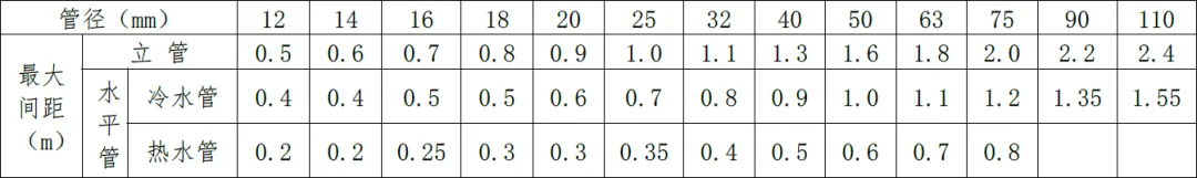 5)塑料管及复合管支吊架最大间距,不大于下表规定。