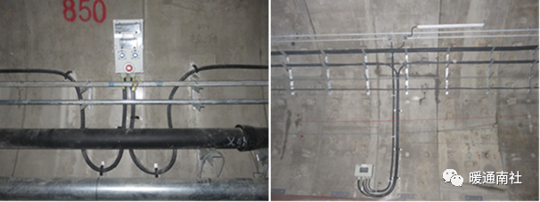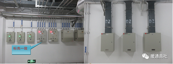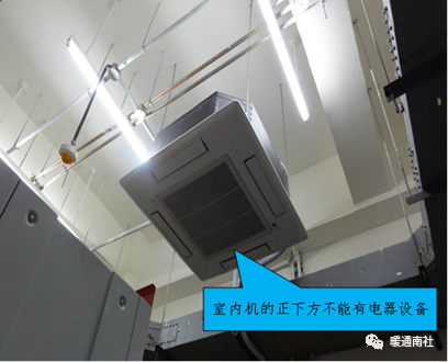 VRV系统安装:室内机不能安装在电器配电柜上方;管道不得横跨在电器配电柜上方。