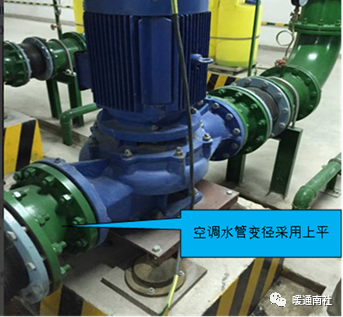 空调水管的干管严禁采用带螺母的活接头,管道连接不得使用铸铁外丝连接件。空调水管的变径应采用上平偏心变径,变径处距管道三通250-300mm的范围内。