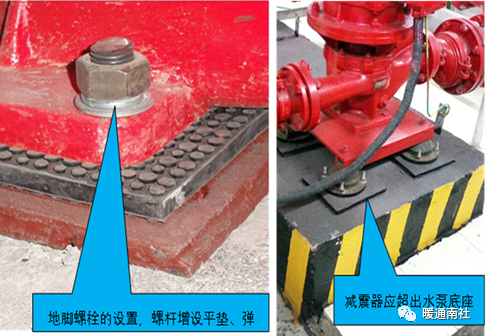 1)水泵采用适配的地脚螺栓固定,螺杆外露部分为螺杆直径的1/2,螺母加平垫和弹垫,紧固件外露部分进行防腐处理;