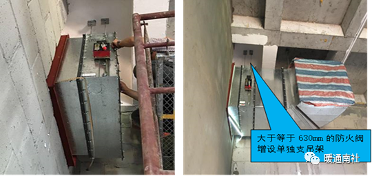 风管末端(不大于400mm)必须单独设置支吊架,当矩形风管边长大于2500mm或圆形风管直径大于2500mm时,支吊架规格型号应经设计确认。