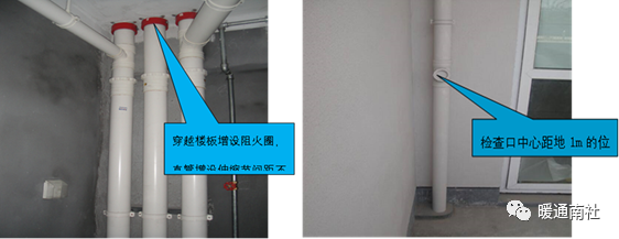 检查口中心高度据标准地面一般为1m,允许偏差±20mm;检查口的朝向应便于检修。暗装立管,在检查口处应安装检修门(检修门不得小于300*300mm)。