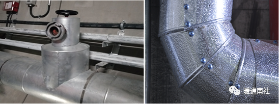 风管与防护套管之间,应用不燃且对人体无危害的柔性材料封堵,风管接口应使用垫片(如硅玻钛金)进行连接且应严密、牢固。