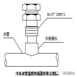 水管温湿度传感器与管道相互垂直安装,轴线应与管道轴线垂直相交。