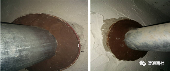 水管安装的同时套装套管,管道安装完毕后将套管固定完善,固定完毕后将套管与墙面空间密实填塞并抹平。