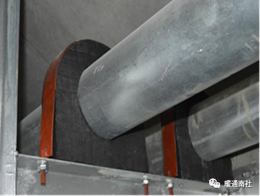 防冻水管道与支、吊架之间应加与保温层相同厚度的绝热防腐木托。