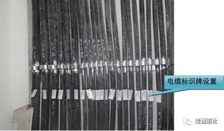 电缆与接线端子压接时,必须垂直进线;端子之间保持一定距离;电缆末端有标识。