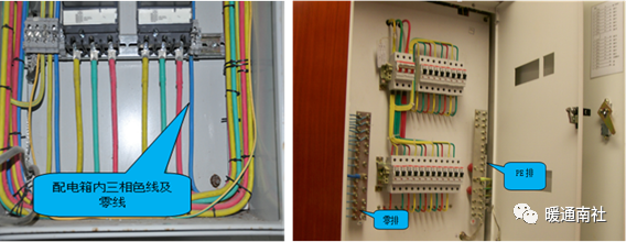 3)配电箱内应按“黄、绿、红、蓝”线色对应相序接线。