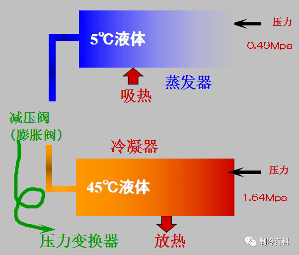 制冷系统运行含高压与低压部分。高压段自压缩机排气口至节流阀前,压力为高压压力;压缩机吸气口压力为吸气压力,与蒸发压力接近,差值即管路流动阻力,通常压力损失应