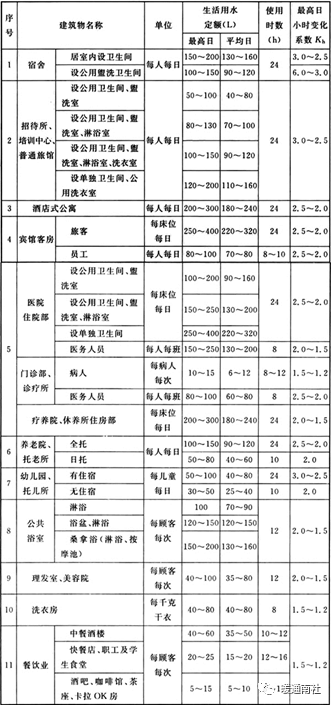 表3.2.2 公共建筑生活用水定额及小时变化系数
