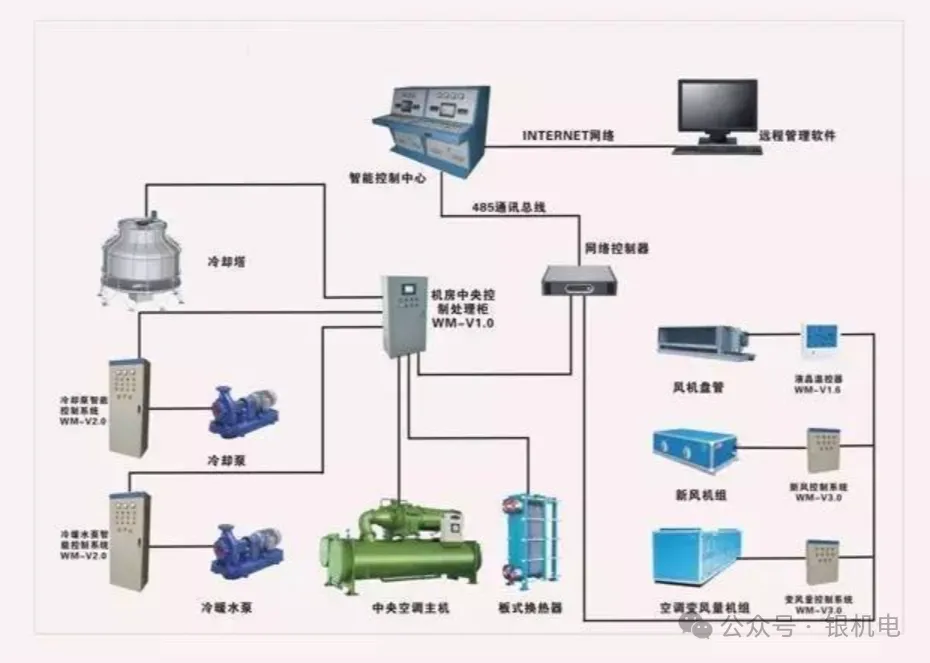 冷水机组的控制系统通常由PLC(可编程逻辑控制器)或专用的控制单元实现,它们能够根据设定的参数和实时监测的数据,自动调节机组的运行状态,确保冷水机组高效、稳定地提供冷冻水。同时,现代冷水机组的控制系统还具备故障诊断和报警功能,能够及时发现并处理机组运行中的问题。