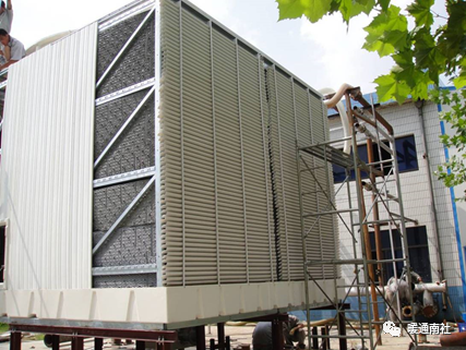 空气分配装置由进风口、百叶、导风板等组成,引导空气均匀地分布在冷却塔整个进风截面上。