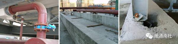 进水管把热水送往配水系统,进水管上折阀门,调节进塔的水量,出水管把冷水送往用水设备或循环泵,必要时多台塔之间可设连通管。