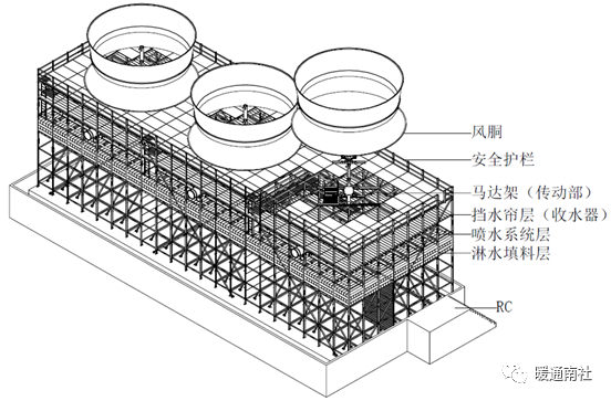 外部围护结构。机械通风与风筒式通风的塔体是封闭的,起支撑、围护和组合气流的功能。
