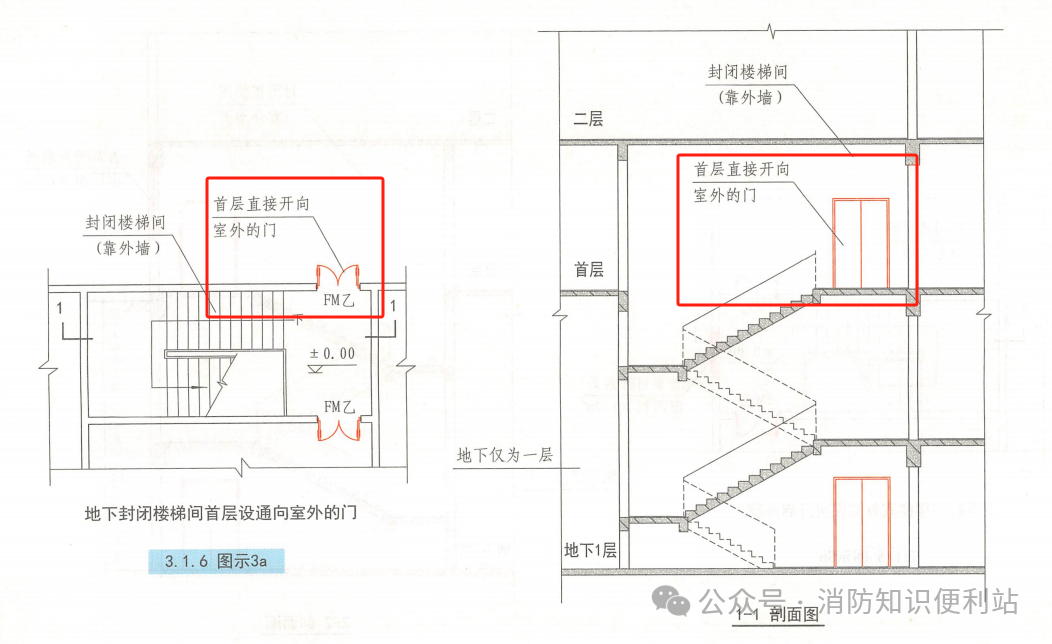 1、地下、半地下建筑(室)的封闭楼梯间不与地上楼梯间共用且地下仅为一层;