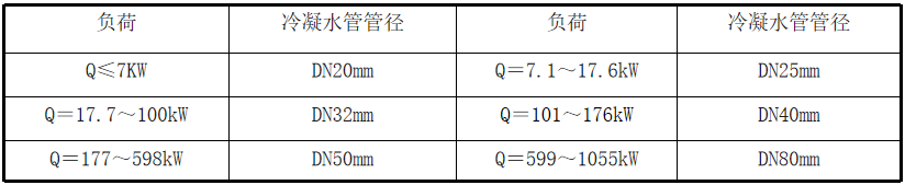 通常,可以根据机组的冷负荷Q(kW)按下列数据近似选定冷凝水管的公称直径。