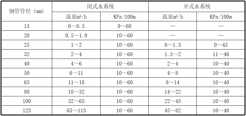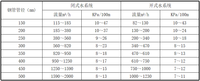 水系统的流量和单位长度阻力损失表