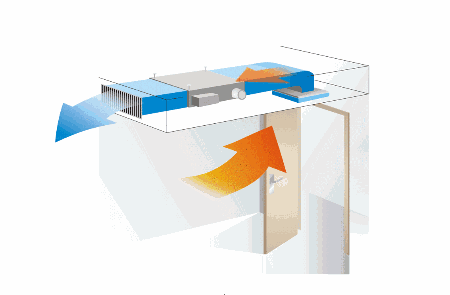 两张新风热交换器的示意图,回收排风能量