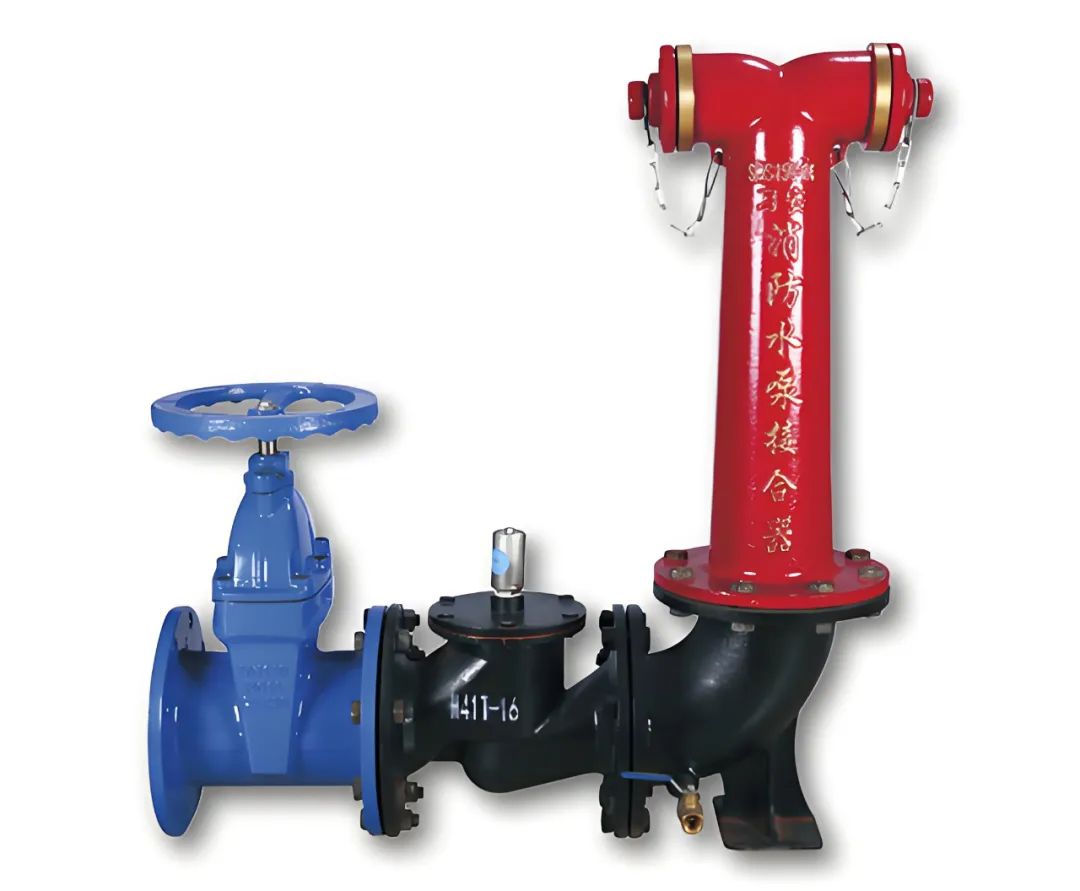 水泵接合器:固定设置在建筑物外,用于消防车或机动泵向建筑物内消防给水系统输送消防用水和其他液体灭火剂的连接器具。