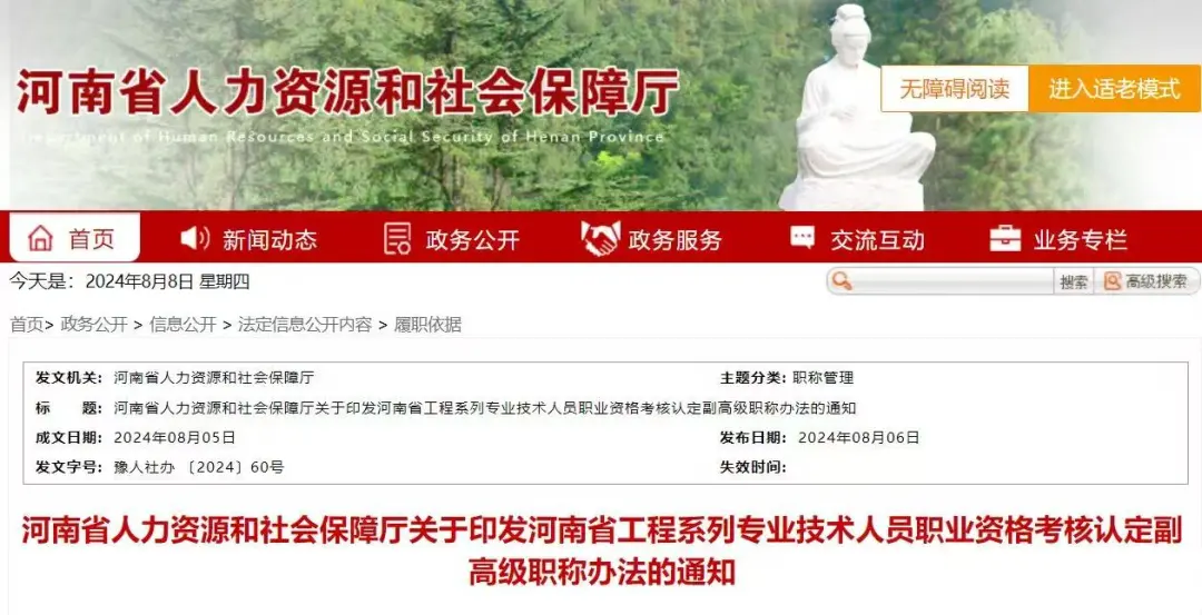 在河南省人力资源和社会保障厅的官网上看到一条关于工程行业副高职称认定的消息。对于需要申报副高级职称的小伙伴们来说,算是个利好。