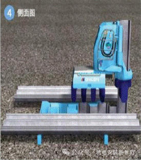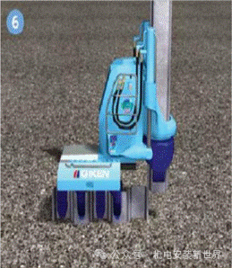 在完成4根钢板桩后,架设下一支桩,压入桩至可获得充分的支撑力位置,打开固定夹升起机身,左右移动固定夹,移动基座至下一反作用力桩,锁定固定夹,完成自行走,采用上述方法持续压桩。