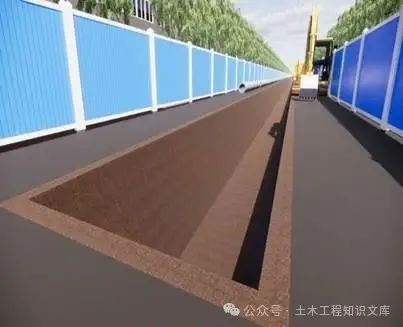 导沟开挖宽度1.5米,深度2米,由于静压力植桩机施工时要保证两侧50cm范围内没有土体,所以开挖前要对钢板桩中心线放样,并保证两侧50cm范围内土体清理干净。导沟内的管线必须全部搬迁完成后,方可进行压桩作业。