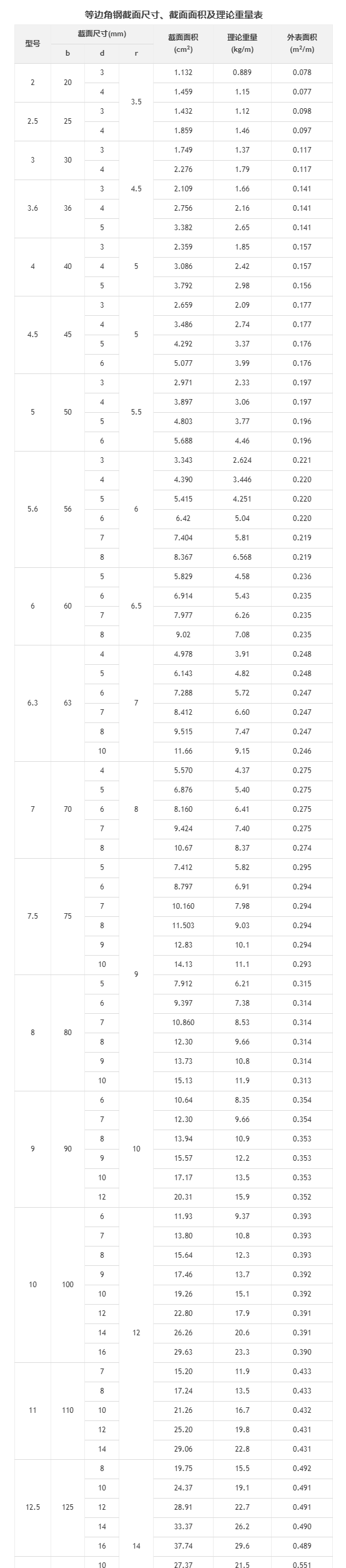 以上介绍了面积计算,那么重量就很容出来了。重量(kg/m)=面积x0.00785