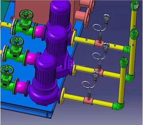 一台冷水机组配置一台冷却塔和一台冷却水泵时,冷却水管路的管径可按冷却塔的进、出水口接管管径确定;一台冷却塔供几台冷水机组时,各台冷水机组的冷却水进、出水管管径与该冷水机组冷凝器冷却水接管管径相同。冷却塔的进、出水管管径与冷却塔的进、出水口接管管径相同。